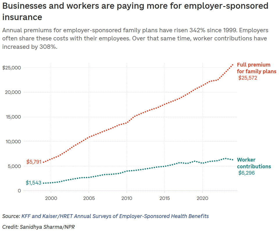 Source : | Health insurance premiums are going up next year - unless you work at these companies (NPR) |