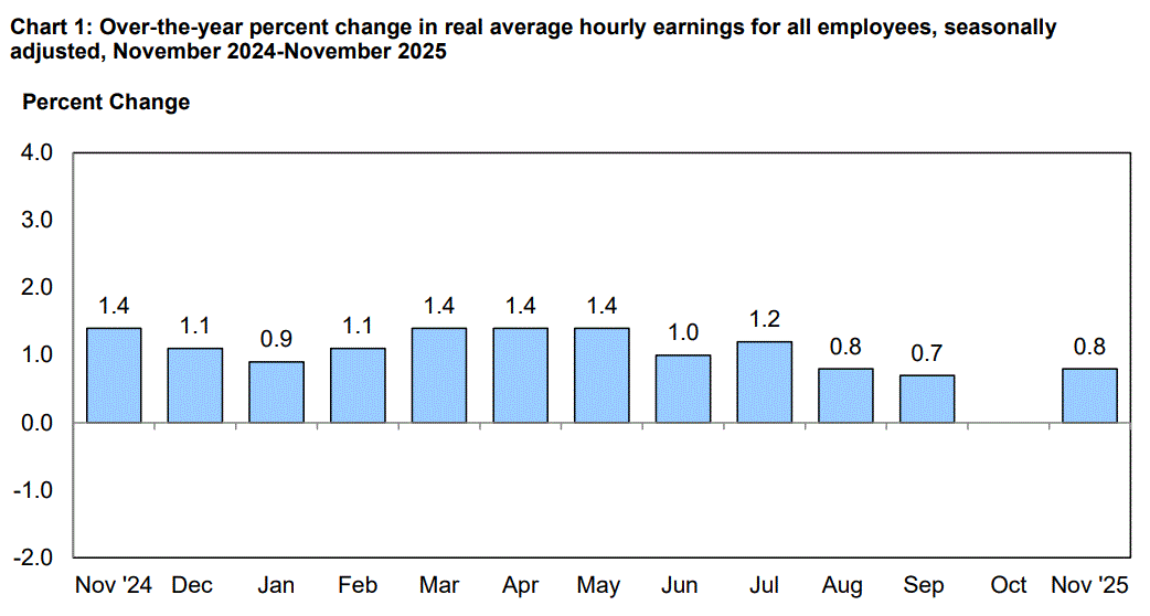 食料品価格は2.6%と低下となっている。エネルギー価格は大きく上昇して前年同月比4.2%となった。電気代は前年同期比で6.9%と、大幅上昇が続いている。住居費は前年同月比3.0%増と落ち着いてきている。サービス業の価格上昇率は3.0%と低下、だいぶ落ち着いてきている。11月の実質時給は、前年同月比0.8%の増加となった(Real Earnings News Release)。※ 参考テーマ「労働市場」