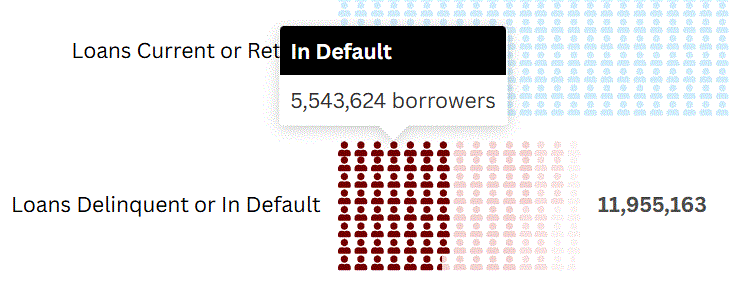 さらに、270日以上の滞納者が370万人、30日以上の滞納者が270万人いて、最大で約1,200万人が差し押さえの対象者となる可能性がある。これは、学生ローン借り入れ人数の1/4以上にのぼるという。