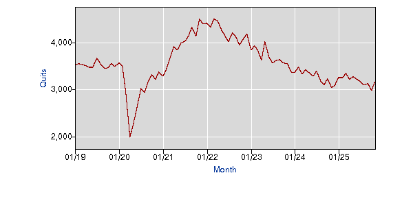 Quits level, Total nonfarm - 2007~2025年