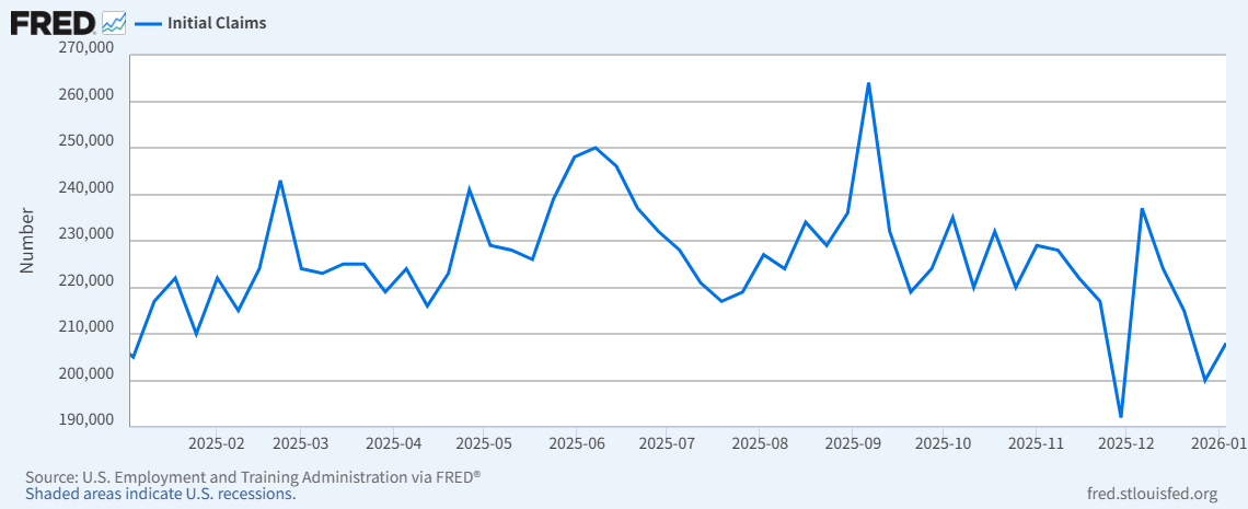 1月8日、労働省は、1月3日の週の新規失業保険申請件数を公表した(「Topics2025年12月22日 失業保険申請は年初と同水準」参照)。労働市場の緩和が続いているものの、失業数は落ち着いた動きをみせている。