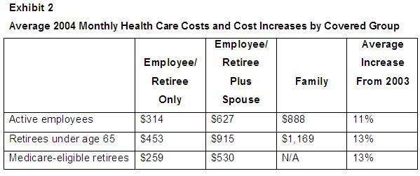 - 従業員一人当りの医療保険プランコストは、一般の平均よりもかなり高い水準にある。特に、65歳未満(Medicare対象前)のコストは、突出している。