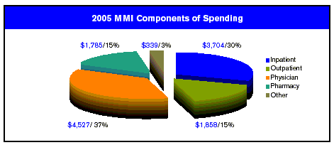 - 4人家族の年間医療費は、2005年で$12,214である。