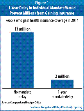 coverage in 2014, a one-year delay in the mandate would slash expected coverage