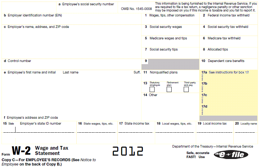 そして、今回、いよいよ納税の面でも、医療保険改革法(PPACA)の規定が発効する。上の書類は、"W-2"と呼ばれる書類で、日本でいえば、企業側が発行する源泉徴収票である。その右下の方に、管理人が勝手に薄いオレンジの色を塗った"Box 12"という欄がある。この一つに『DD $・・・・・』と記載されていれば、それは、企業側が負担した医療保障コストの年間総額である。
