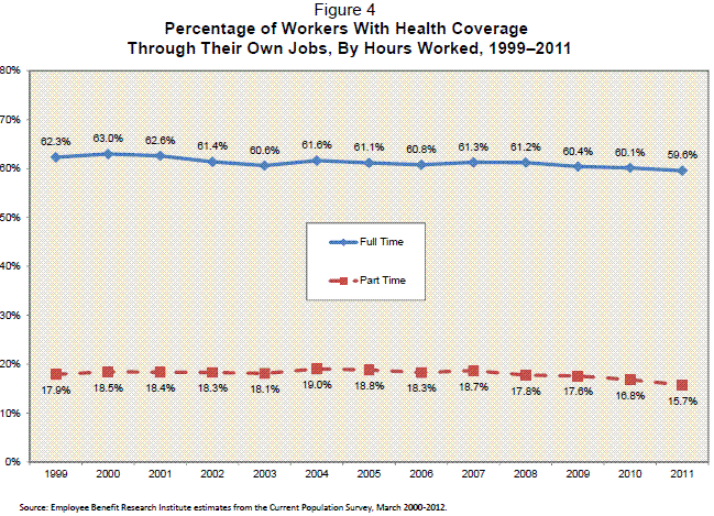 | Source : | Trends in Health Coverage for Part-Time Workers (EBRI) |