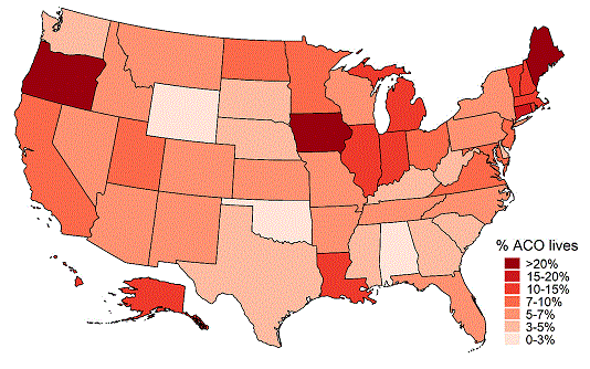 | Source : | Growth And Dispersion Of Accountable Care Organizations In 2015 (Health Affairs) |