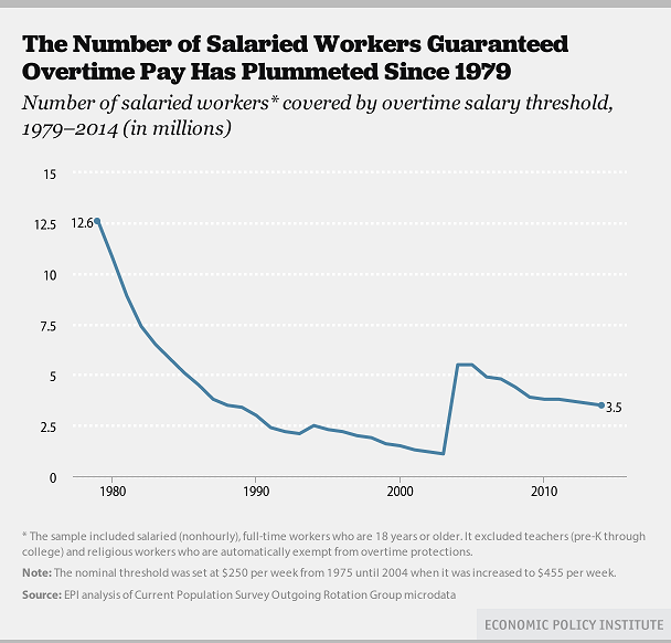 | Source : | The Number of Salaried Workers Guaranteed Overtime Pay Has Plummeted Since 1979 (Economic Policy Institute) |