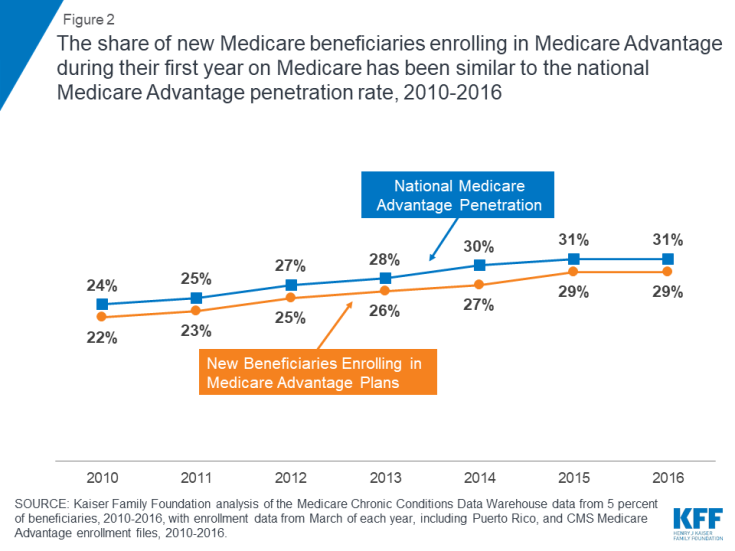 | Source : | What Percent of New Medicare Beneficiaries Are Enrolling in Medicare Advantage? (The Henry J. Kaiser Family Foundation) |