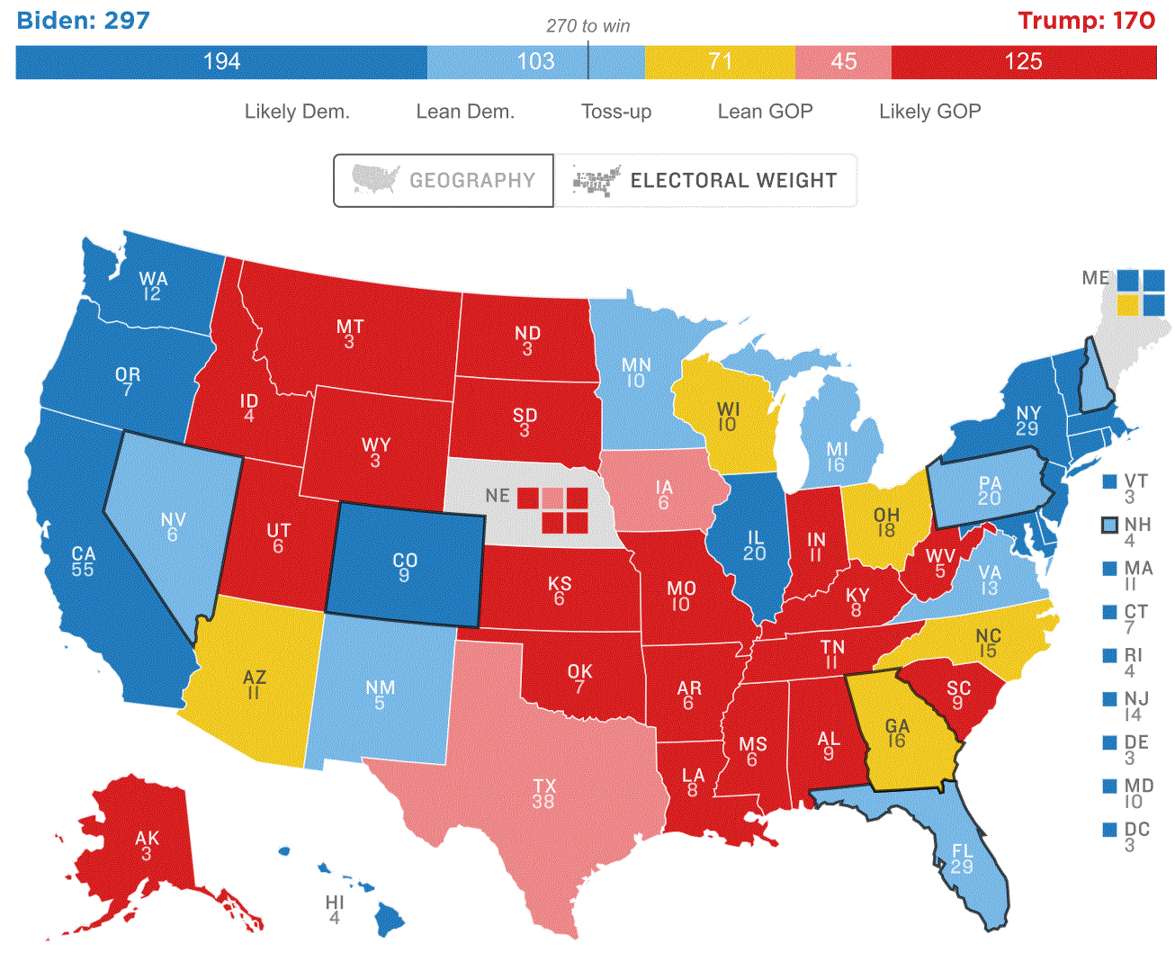 | Source : | NPR Electoral Map: Biden Lead Widens Again With Less Than A Month To Go (NPR) |