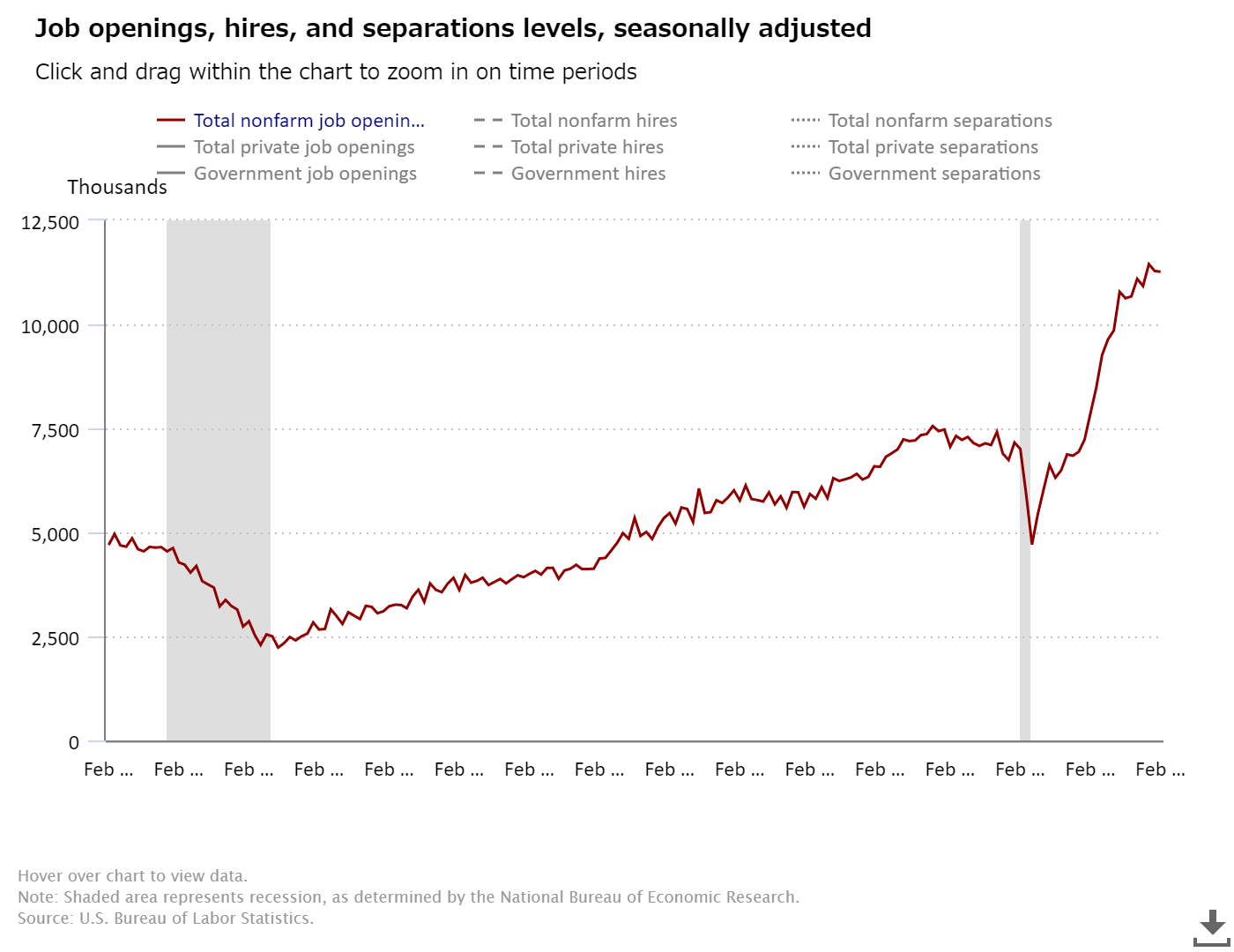 Job Openings and Labor Turnover Summary (BLS) 4.4 million in U.S. quit or changed jobs in February as turnover remained high (Washington Post) |