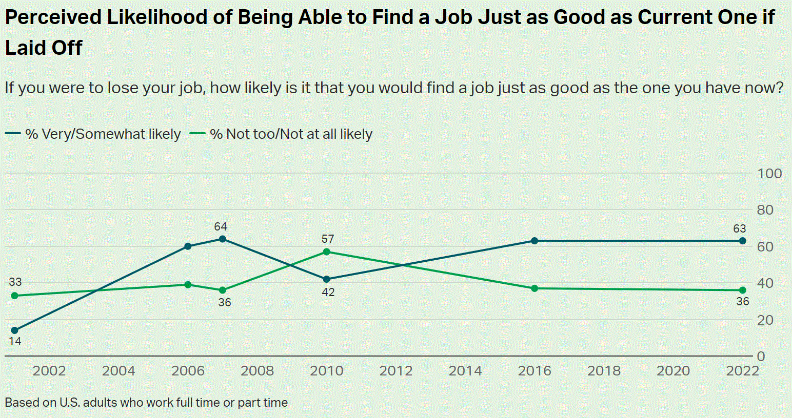 - 「もし今レイオフされたとしても、現在と同程度の仕事が見つかる」と考える人の割合は63%と、これも高い水準にある。