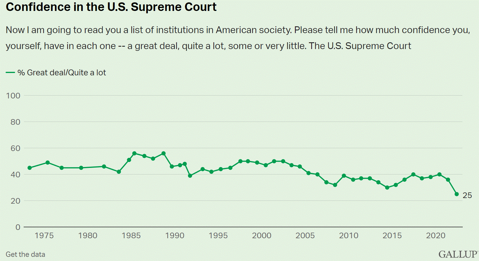 | Source : | Confidence in U.S. Supreme Court Sinks to Historic Low (GALLUP) |