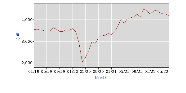 Quits level, Total nonfarm - 2007~2022年