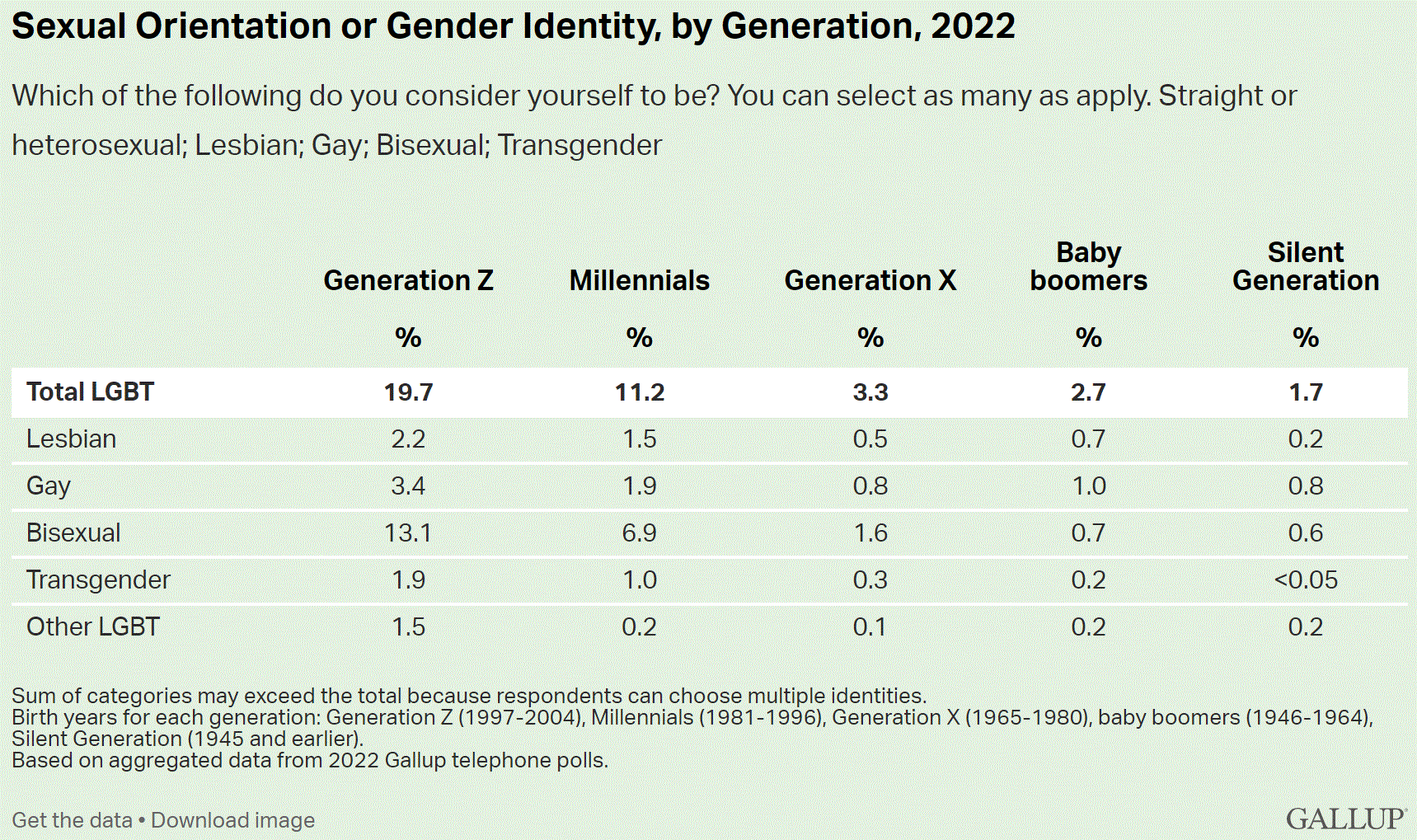 | Source : | U.S. LGBT Identification Steady at 7.2% (GALLUP) |