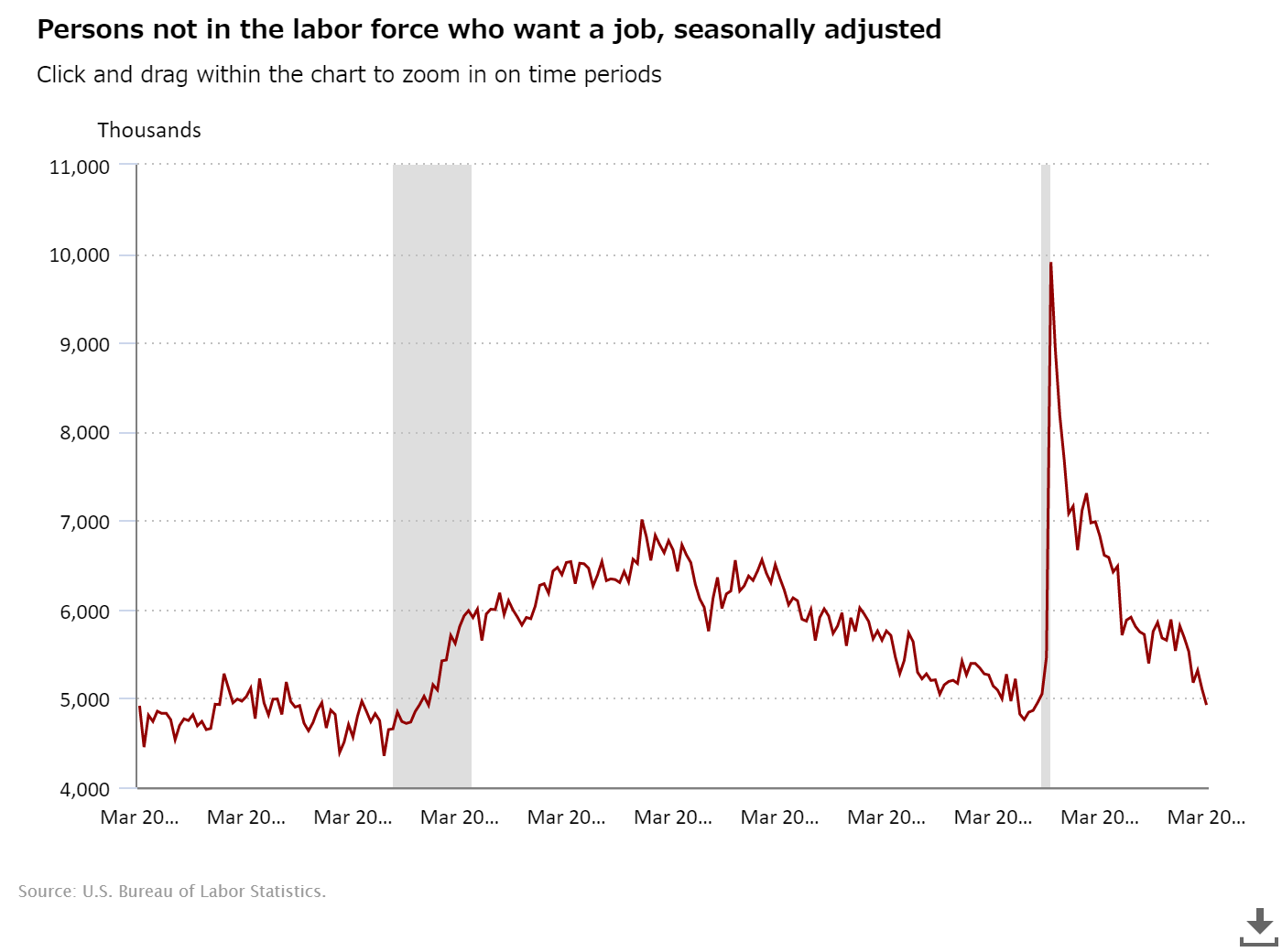 | Source : | Job Openings and Labor Turnover Summary (BLS) |