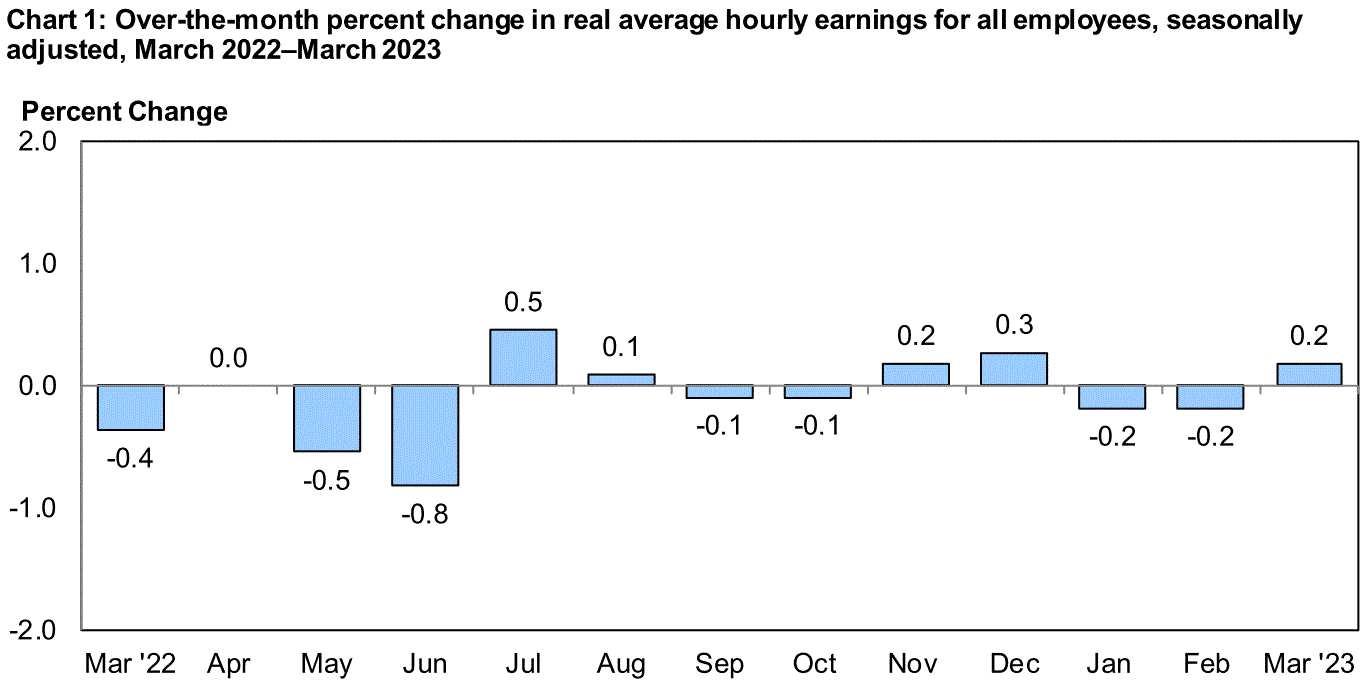 4月12日、BLSは3月の消費者物価指数(CPI-U)を公表した(News Release)。前年同月比5.0%の上昇と、伸び率は着実に低下している(「Topics2023年3月15日 CPIは冷却せず」参照)。前月比では+0.1%となり、勢いはだいぶ収まってきた感じだ。エネルギー全体の価格指数は、前年同月比で伸び率はマイナス6.4%の伸びとなった。マイナスの伸び率となったんは、2021年1月以来である。食料品価格の伸び率は前年同月比8.5%増と、水準は低下してきたものの、依然として高い伸び率となっている。なお、卵の価格は、足許(前月比)の低下が続いている。エネルギー、食料品を除くCPI上昇率は前年同月比5.6%と、同じ水準の伸び率が続いている。住居費は前年比8.2%増と、上昇率の高まりが止まらない。3月の実質時給は、前月比0.2%、前年同月比で-0.7%となった(Real Earnings News Release)。ただし、サービス業の価格上昇率は高い水準を続けている。※ 参考テーマ「労働市場」