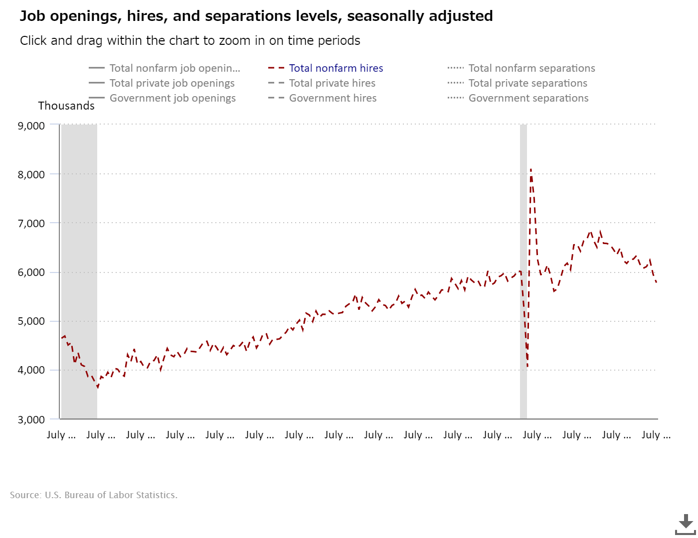 | Source : | Job Openings and Labor Turnover Summary (BLS) |