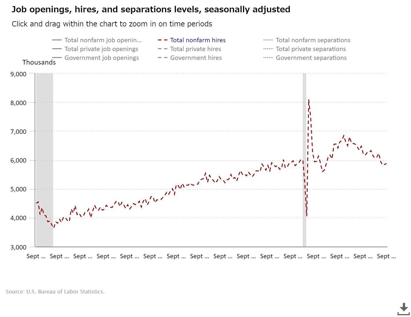 | Source : | Job Openings and Labor Turnover Summary (BLS) |