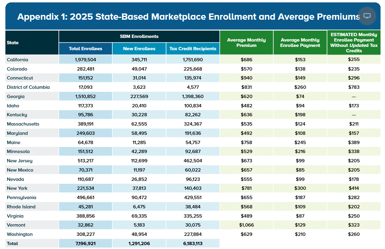 | Source : | Historic Numbers Enroll in Health Insurance through State-Based Marketplaces, With Consumers Benefitting from Premium Tax Credits (NASHP) |