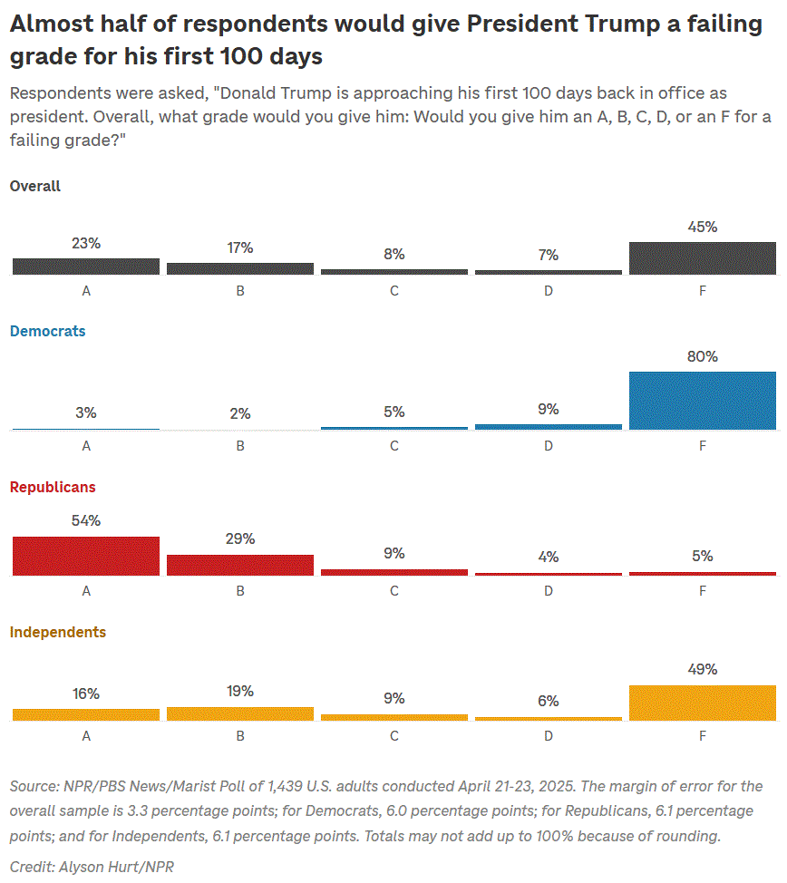 | Source : | More give Trump an F than any other grade for first 100 days, poll finds (NPR) |