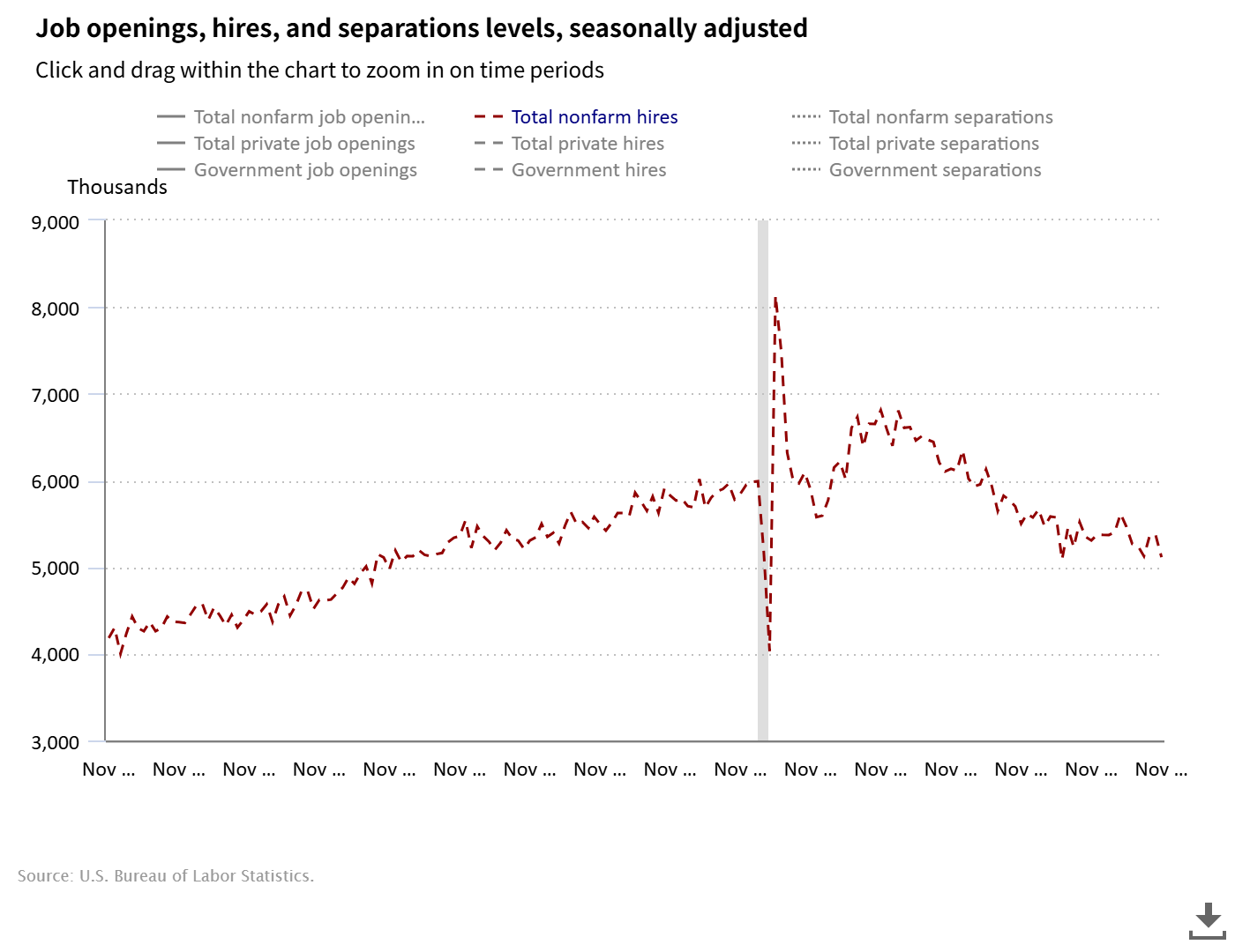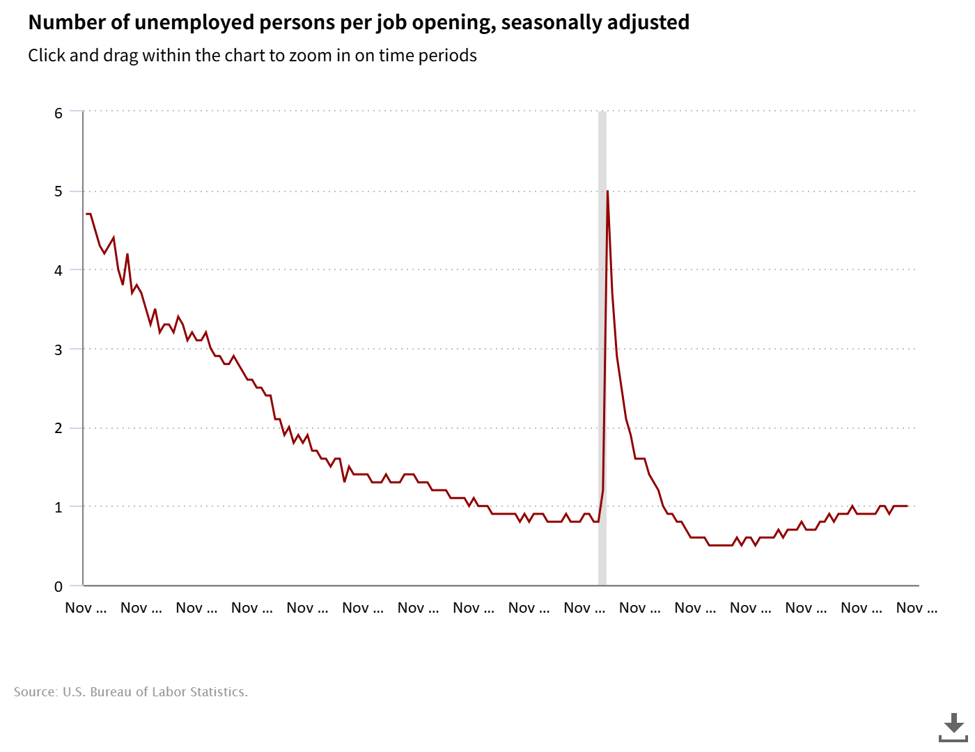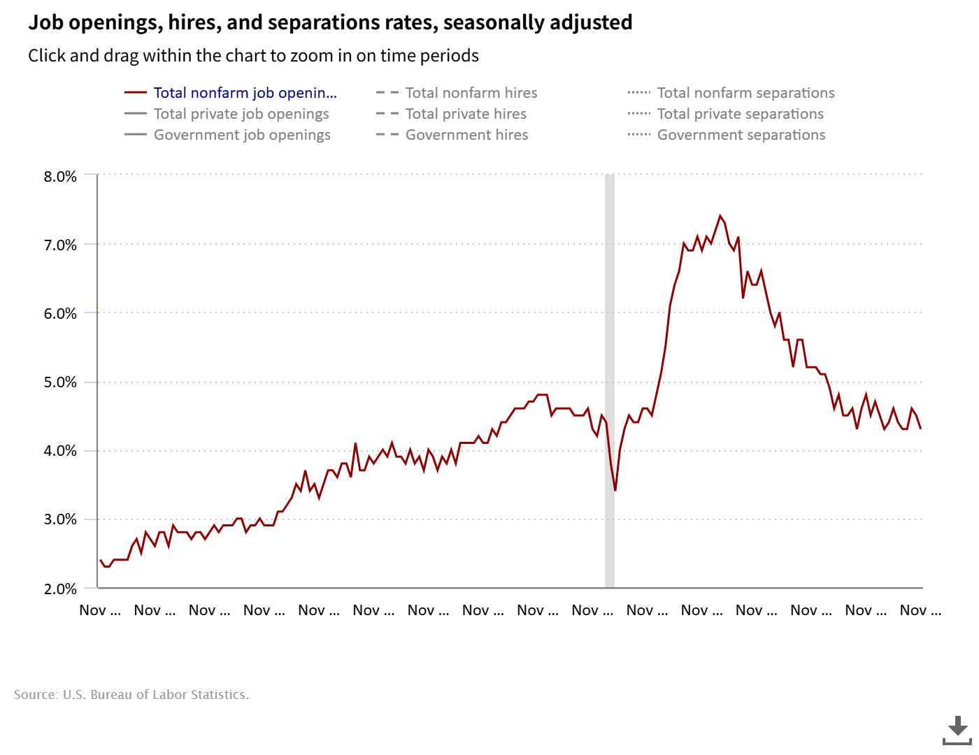 | Source : | Job Openings and Labor Turnover Summary (BLS) |