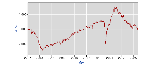 Quits level, Total nonfarm - 2007~2025年